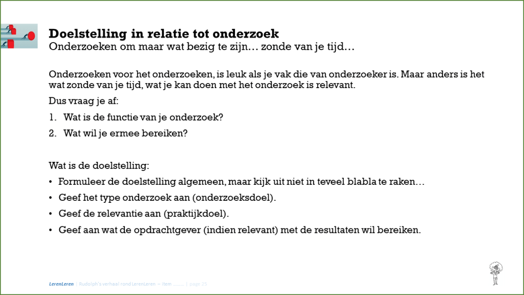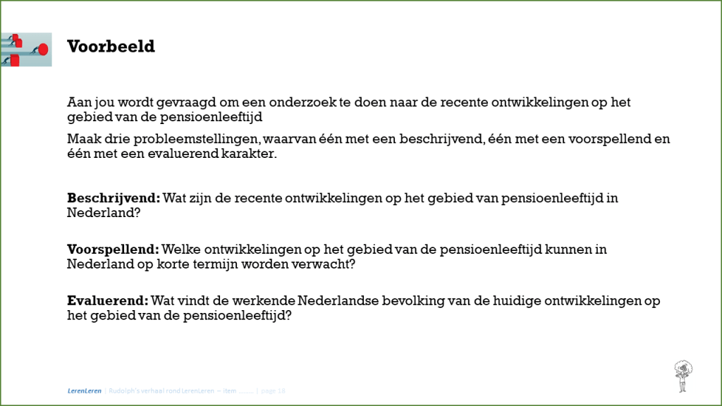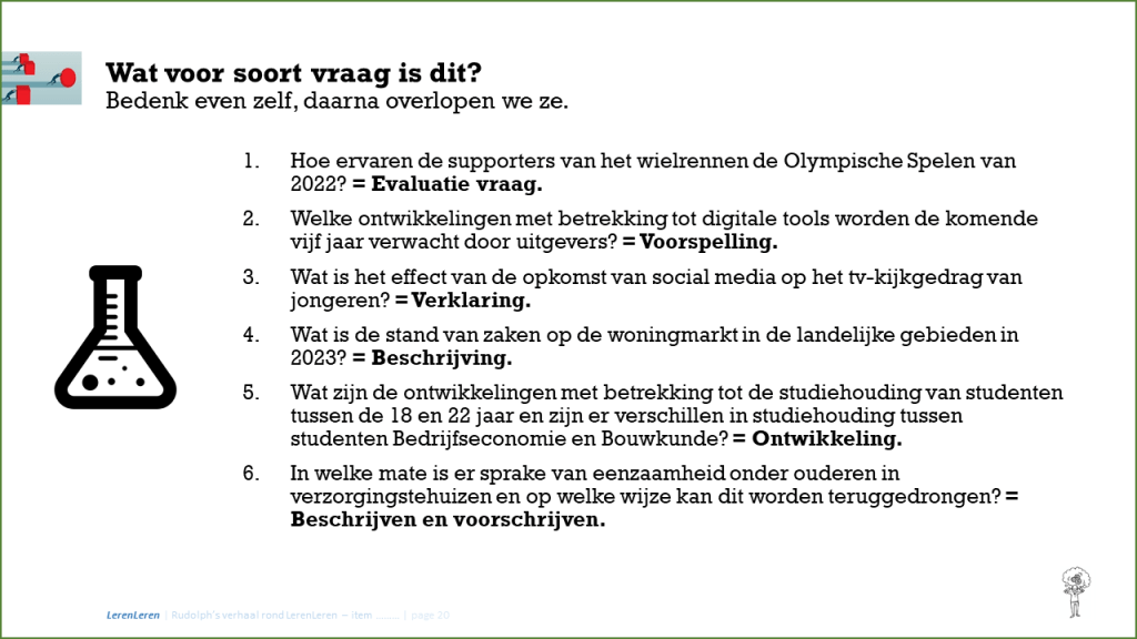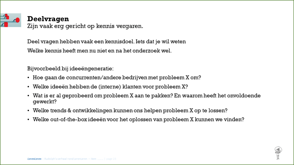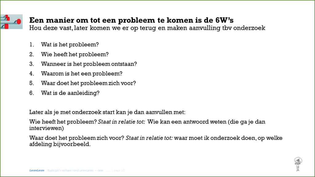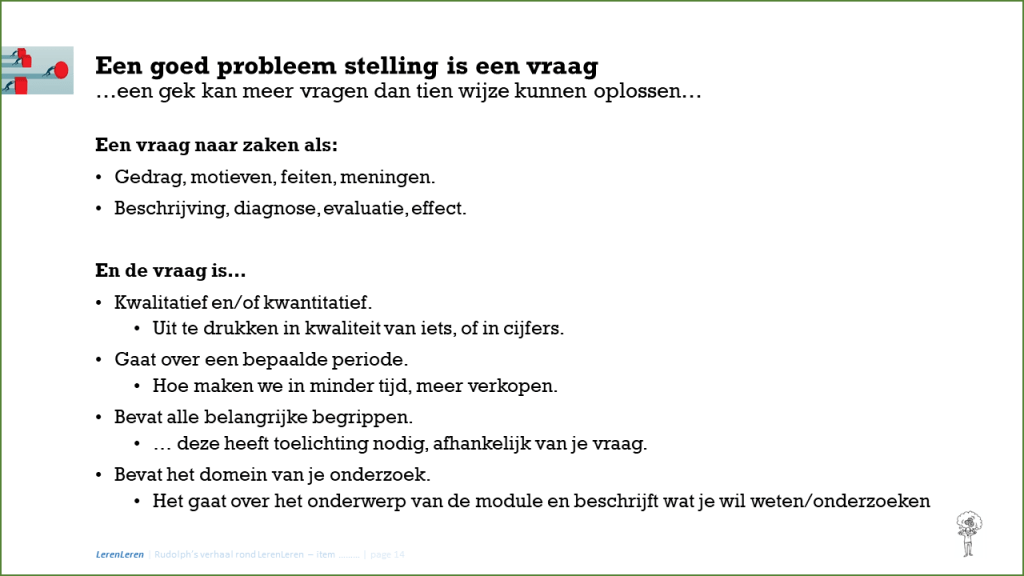 Een hoofdvraag is iets waar het antwoord zal leiden tot een actie. Vaak een verbeter actie.